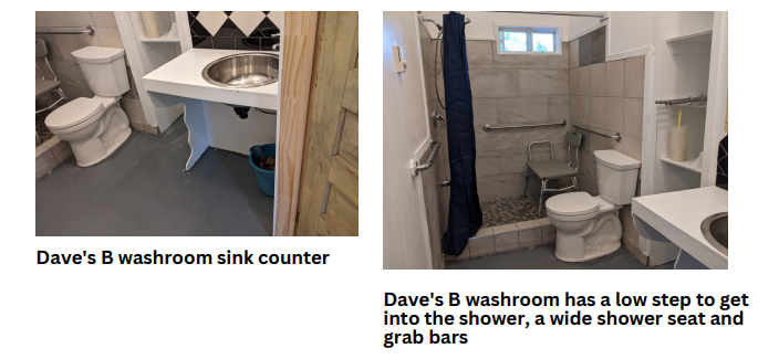 Dave’s Cottage is our most recently renovated space! This Accessible Cottage houses up to 4 adults, with a shower.