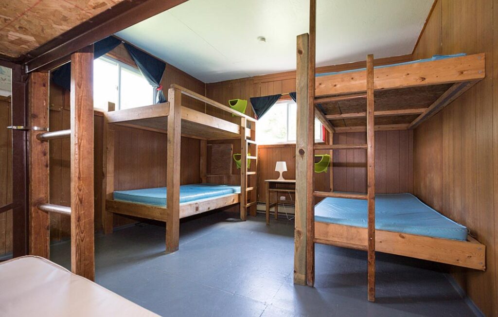 Guests must bring their own pillows and bedding. There is a central shared two-piece washroom in each dorm, and outdoor showers are located nearby.