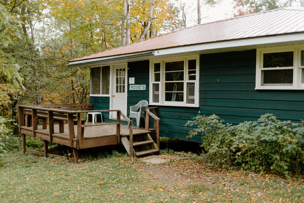 Guests must bring their own pillows and bedding. There is a small kitchen with a single burner, mini fridge, a microwave and kettle, and some dishes provided for simple meal prep. Rosie’s offers a two-piece bath, with outdoor showers located about 30 seconds away, near the dining hall, or 1 indoor shower in the Program Centre bathroom. Rosie’s also has a small screened-in sitting area and a deck off the front door.