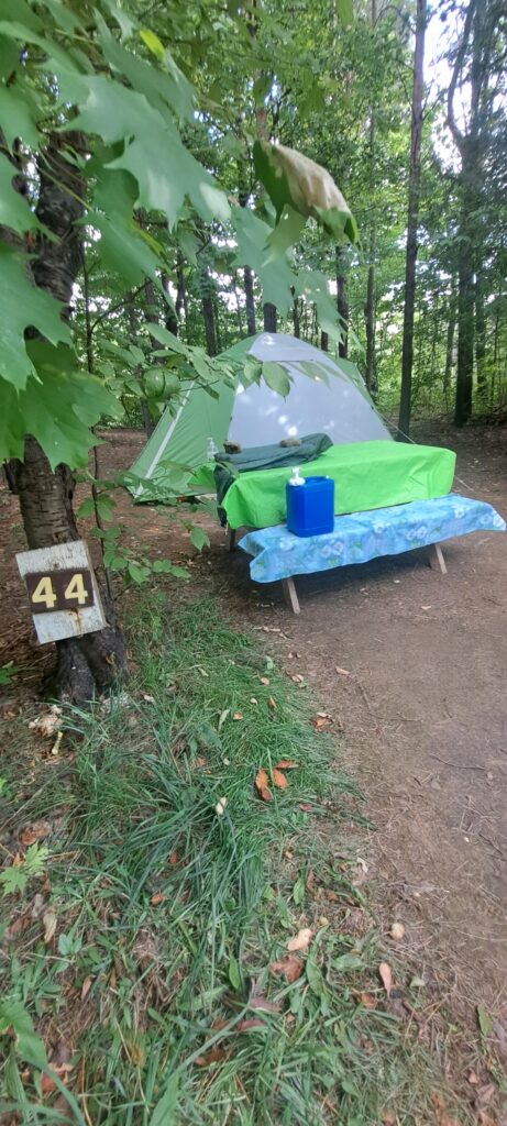 No fires allowed on this site (but camping stoves are okay). Sites are open, not much tree coverage. Small RV access....